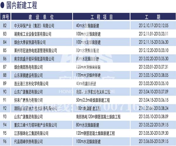 宏順建設核心技術 宏順建設專業承接各種煙囪新建,磚煙囪新建,煙囪防腐,煙囪滑膜,煙囪改造,煙囪內壁防腐,煙囪脫硫防腐等工程,有多年的成功經驗...解詳情